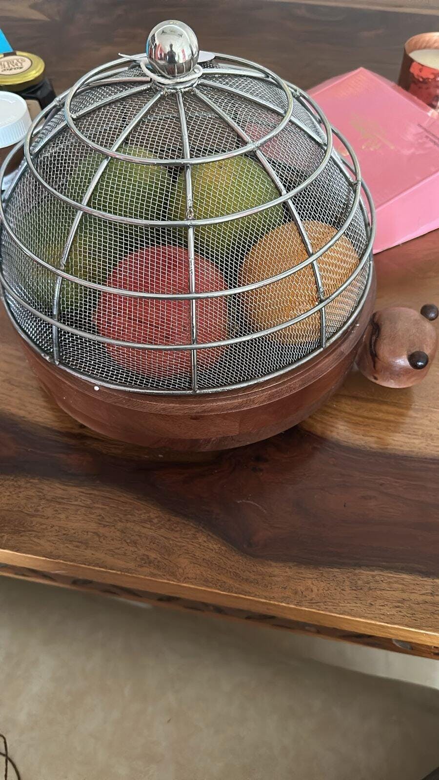 Introducing the Kurma Fruit Basket – A whimsical fusion of art and functionality. Crafted with a mango wood base and a sleek metal jaali, this adorable turtle-shaped basket is perfect for storing your favorite fruits or serving up piping... See More